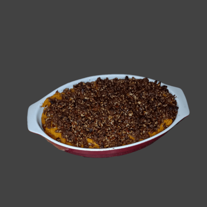 While my version of sweet potato casserole is less sweet than that of my youth, this dish could sƟll make