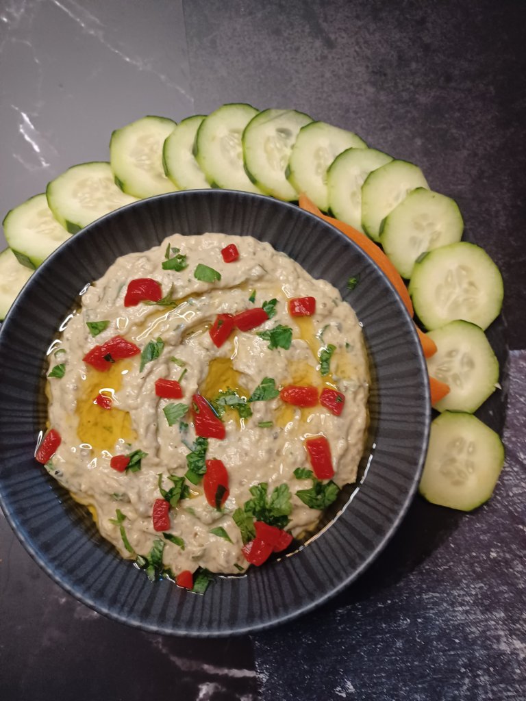 Usually, this dip is made with fire roasted eggplant. Since the temperature in my corner of